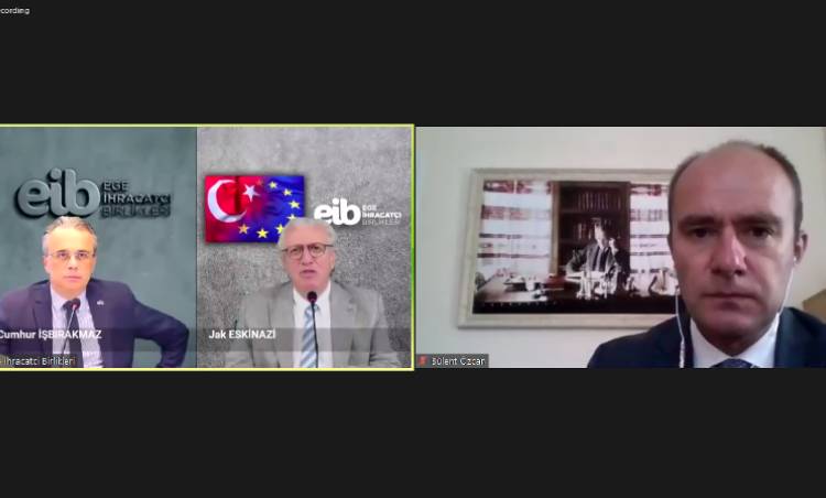 Ege İhracatçı Birlikleri’nin düzenlediği online video konferansta Dışişleri Bakanlığı Avrupa Birliği Başkanlığı Mali İş Birliği ve Proje Uygulama Genel Müdürü Bülent Özcan’ın katılımıyla Avrupa Birliği’nin 2027 yılına kadar sürecek yeni döneminde Türkiye’nin yararlanacağı programlar ve proje hibeleri konuşuldu