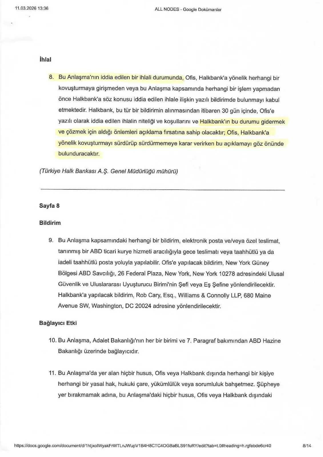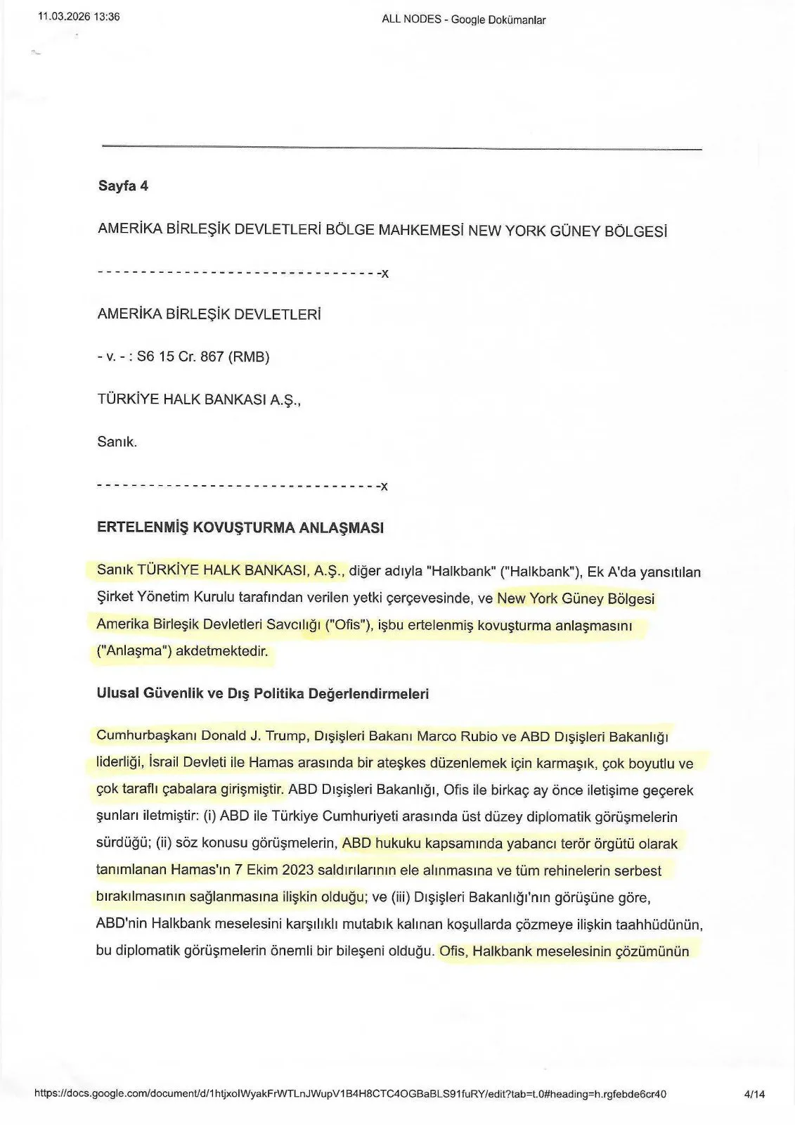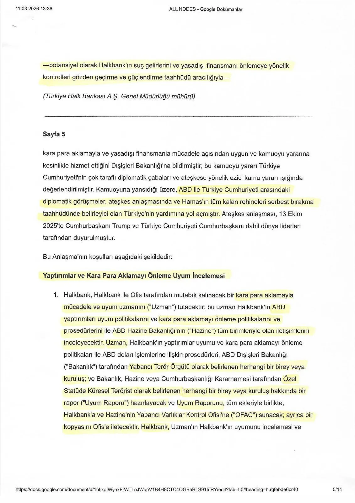 ABD'nin bu malvarlığını dondurması veya el koyması durumunda tam işbirliği sağlayacak. Uzman 90 gün içinde raporunu hazırlayacak. Uzmanın raporu olumsuz olursa, Halkbank’tan konuya ilişkin açıklama istenecek. Açıklama tatmin edici olmazsa, sil baştan. Anlaşma iptal. Dava devam! Bu doğrultuda AKP, Amerika’nın Ortadoğu politikasının yürütücülüğüne devam edecek!"