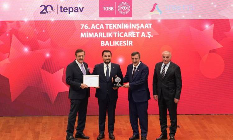 Mühendislik, tedarik ve yapım (EPC) alanındaki öncü şirketlerden ACA Teknik İnşaat, Türkiye Odalar ve Borsalar Birliği (TOBB) tarafından düzenlenen “Türkiye 100” yarışmasında üst üste ikinci kez Türkiye'nin en hızlı büyüyen 100 şirketi arasında yer aldı. Son iki dönemi kapsayan dört yıllık istikrarlı büyümesini bu prestijli ödülle taçlandıran şirket, ödülünü 22 Eylül’de Ankara'da düzenlenen törende Cumhurbaşkanı Yardımcısı Sayın Cevdet Yılmaz ve TOBB Başkanı Sayın M. Rifat Hisarcıklıoğlu'ndan aldı.
