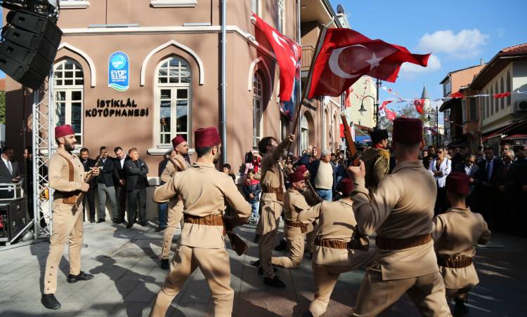 İstiklal Harbi Zaferi'nin merkezlerinden olan Eyüpsultan’da, İskele Caddesi üzerinde bulunan tarihi karakol binasının yeniden işlevlendirilmesiyle Eyüpsultanlıların hizmetine açılan konsept kütüphanede, o dönemi anlatan kıymetli eserler yer alıyor.