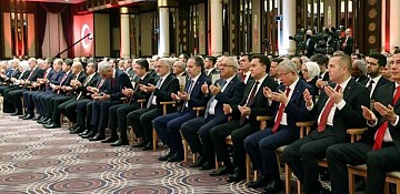 “Tabi zor bir dünya var. Gerçekten bu yüzyıl zor geçecek, kolay geçmeyecek, ekonomik anlamda, iklim krizi noktasında, savaşlar… Bakınız Ukrayna'da yaşanan savaş… Yani bir ülke karar veriyor ve saldırıyor, bir savaş çıkıyor. Büyük bir mezali bu. Daha kötüsü. Mazlum insanların öldürüldüğü yerde, seyreden bir dünya. Yani Filistin'de, Gazze'de, Filistinlilere yapılan katliamı bütün dünyanın seyrediyor olması… Bütün bunlar kötü sınavlar. Bütün bunlara karşı milletçe, aklı başında, iyi düşünceyle, doğru düşünceyle, hukuktan asla vazgeçmeden, güvenliğinden asla taviz vermeden, biz buna biraz ‘hümanist bir bakışla’ diyoruz -ki bizim topraklarımızda o tılsım var- bunu bütün dünyaya anlatarak, inşallah dünyadaki barışa ve toplumsal iyileşmeye, ekonomik iyileşmeye hep beraber katkı sunar ve çözümler buluruz.”
