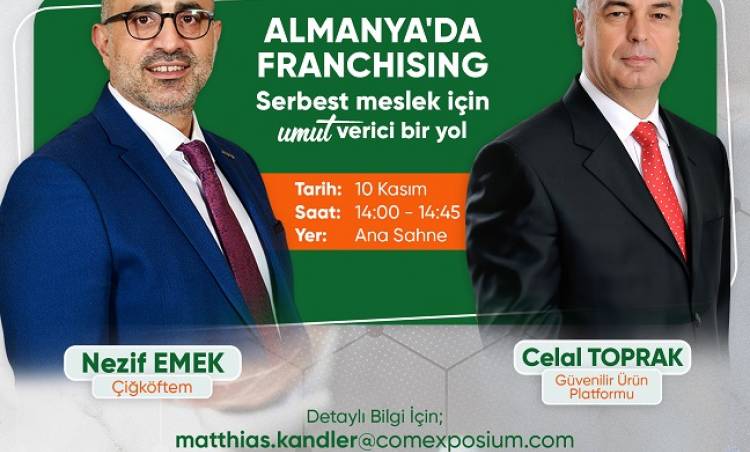 9-11 Kasım tarihleri arasında gerçekleştirilecek Franchise Expo Germany’da etkinliklerin de çok ses getireceğini söyleyen fuar yetkilileri, bu yıl ilk defa Türkçe bir oturum düzenleneceğinin bilgisini verdi. Em Group Europe Genel Müdürü Nezif Emek’in Avrupa’da ticaret ile ilgili sunum yapacağı oturumun moderatörlüğünü ise Güvenilir Ürün Platformu Başkanı Celal Toprak yapacak.