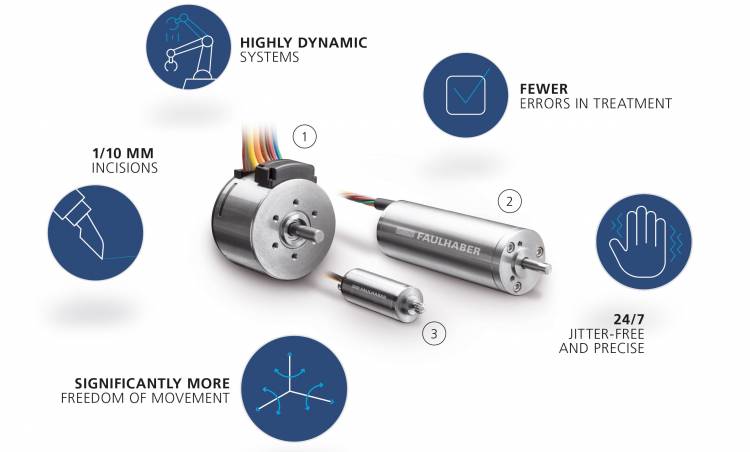 Robot destekli tıbbi operasyonlar, sadece gelecekte olacak bir kurgu değildir, aksine, dünya genelinde birçok ameliyathanede günlük rutinlerin bir parçası haline gelmiştir. ABD sınırları içerisinde bir monitör başında oturan bir doktorun Fransa’da bir hastayı ameliyat ettiği telemedikal bir operasyon bile gerçekleştirilmiştir. Ancak genelde, robotik sistemler ve bilgisayarlar ameliyathanedeki insanlara yardımcı olarak hizmet ediyor. Yılların tıbbi deneyimi bir programlama diline dönüştürülemese de robotların kullanımı sayesinde ameliyatlar daha güvenli hale getirilebiliyor. FAULHABER, tam da bu noktada devreye giriyor ve hem hasta için hem de hasta vücudu içinde önemli bir rol oynuyor.