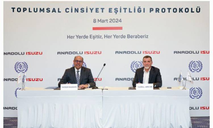 Anadolu Isuzu, Birleşmiş Milletler Uluslararası Çalışma Örgütü (ILO) ile “Toplumsal Cinsiyet Eşitliğinin Geliştirilmesi Modeli” üzerinde çalışmalar yapmak üzere protokol imzaladı. 8 Mart Dünya Kadınlar Günü’nde gerçekleşen imza törenine Anadolu Isuzu Genel Müdürü Tuğrul Arıkan ve ILO Türkiye Ofisi Direktörü Yasser Ahmed Hassan ile birlikte Anadolu Isuzu’da farklı görevler üstlenen kadın çalışanlar ve davetliler katıldı.