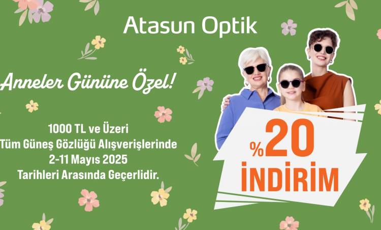 Mağazalarında ünlü dünya markalarının iki yakın gözlük kişiliğiyle buluşturan Atasun Optik, uzman kadro ve birleştirme fiyat politikasıyla dikkat çekiyor. Anneler Günü'ne özel olarak sunulan yüzde 20 indirim imkanı, hem anneler için anlamlı bir hediye, hem de bahar sezonu dolu bir başlangıç yapmak isteyen herkes için fırsat niteliğinde.