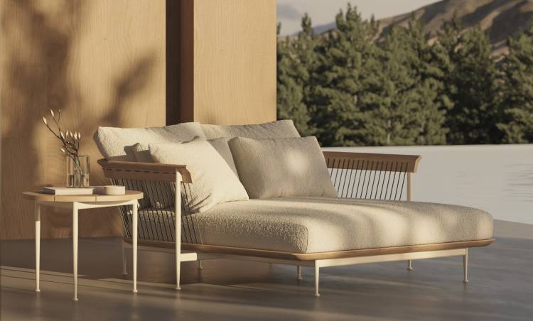 Alüminyum, tik ağacı ve detaylandırılmış ip detaylarıyla tasarlanan divan, annelere sadece bir gün değil, ona özel hisler verecek bir konfor alanı yaratıyor.