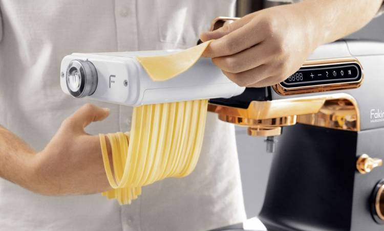Fakir Chef Pastro Mutfak Şefi: Profesyonel mutfak çeşitleri, üstün çeşitlilikteki teknolojiyle hamur işlerinin hazırlanışı zahmetsiz bir deneyime dönüşüyor. Özel 3'ü 1 arada makarna aparatıyla mutfağınızda lezzet İtalyanlarını en kolay şekilde hazırlamaya yardımcı olan şef, spagetti aparatıyla hamuru ince şeritlere ayrılırken, fettuccine aparatıyla yoğun ve doyurucu makarnalar hazırlamanıza olanak sağlar.