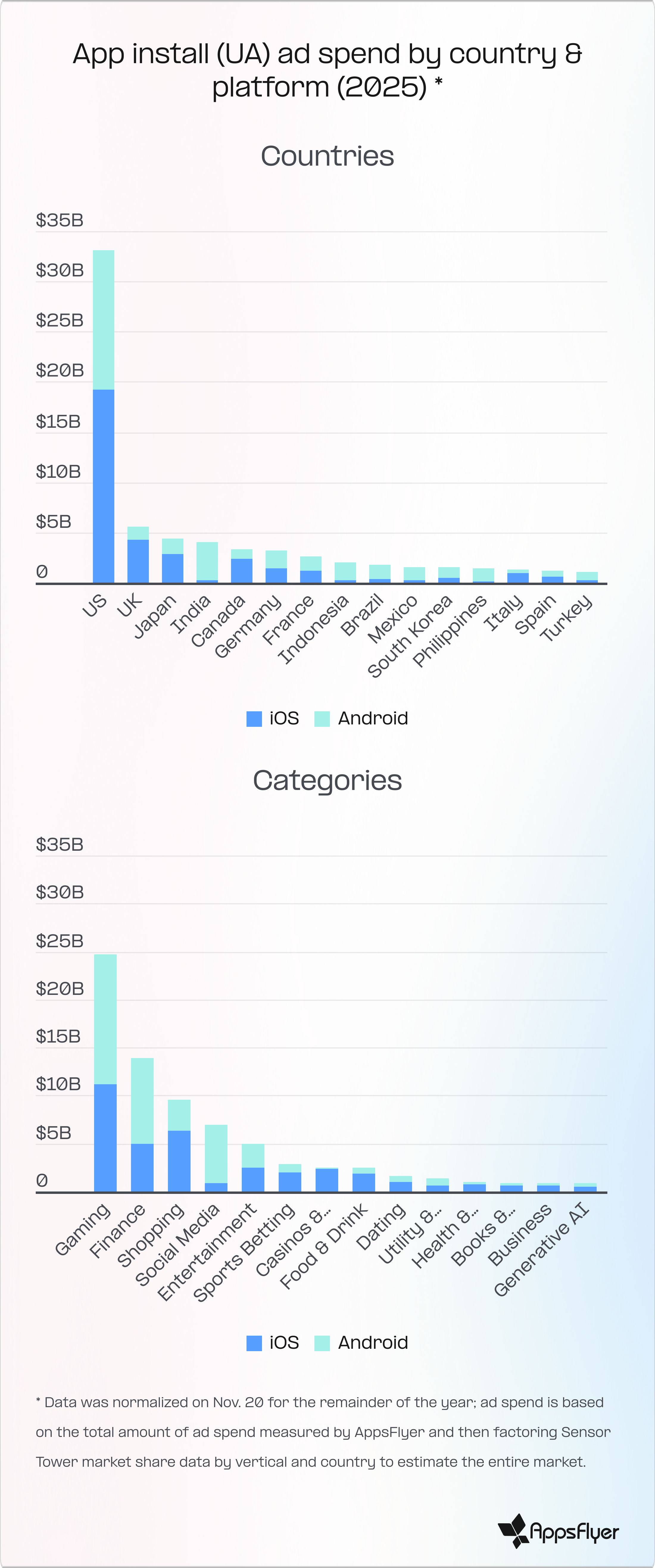 AppsFlyer'ın 2025 Yılı Mobil Uygulama Trendleri; oyun, e-ticaret, finans, yaşam tarzı ve daha fazlasını kapsayan 45.000 uygulamanın 32 milyar ücretli uygulama yüklemesini içeren anonim bir küresel veri topluluğuna dayanmaktadır. Analiz, iOS ve Android platformlarında kullanıcı edinimi, yeniden pazarlama, ücretli yüklemeler, kategori düzeyinde etkinlik ve yapay zeka ajanı kullanımını kapsamaktadır.