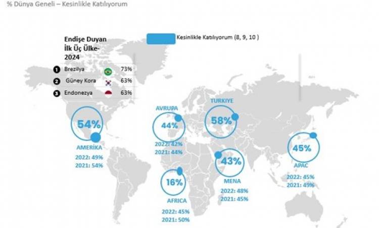 Türkiye’de ise "Kişisel bilgilerimi dijital olarak paylaşma konusunda endişeliyim" diyenlerin oranı yüzde 58. Sadece yüzde 26’lık bir kısım bu konuda hiçbir endişe duymuyor.