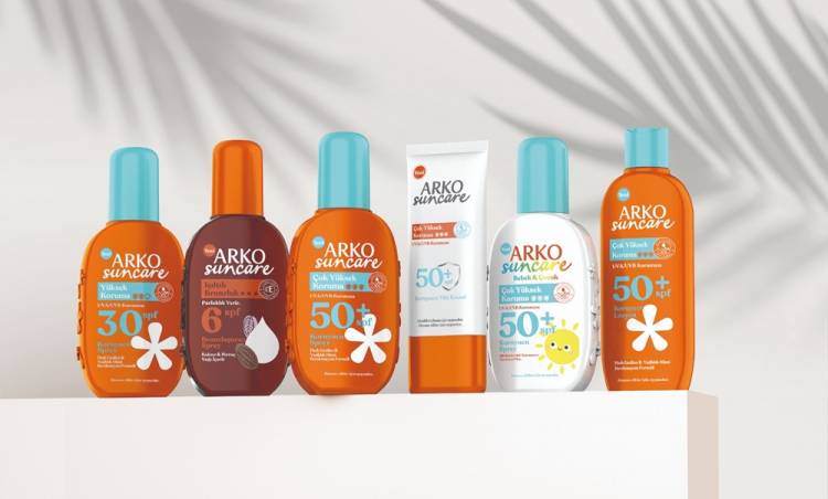 Türkiye’nin öncü kişisel temizlik ve bakım şirketi Evyap’ın önemli markalarından Arko Nem’in konfor ve kullanım kolaylığını bir arada sunan güneş bakım ailesi Arko Suncare, raflarda yerini aldı. Hem şık hem de elden kaymayı önleyen ergonomik tasarımıyla Arko Suncare ürün portföyünde; SPF 30 ve 50+ güneş koruyucu sprey, SPF 50+ güneş koruyucu losyon, çocuklara ve bebeklere özel SPF 50+ koruyucu sprey ile SPF 50+ koruyucu yüz kremi ve SPF 6 bronzlaştırıcı sprey bulunuyor.