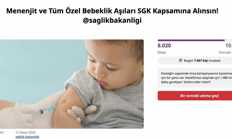 Kampanya, menenjit ve rotavirüs gibi hayati öneme sahip olan ancak takvimde ücretsiz aşı takviminde yer alan özel aşıların Sosyal Güvenlik Kurumu (SGK) tarafından karşılanması talep ediliyor.