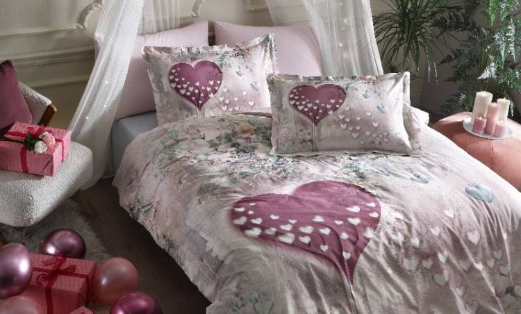 14 Şubat Sevgililer Günü ile ilgili detayların yer aldığı nevresim takımı, yatak odalarına sevginin en saf halini resmediyor. Kaliteli dokusu ve pamuklu yapısıyla kış boyunca sevdiklerinize sıcacık bir kullanım sunan bu özel koleksiyonda, çiçek ve kalp baskılarıyla “aşkınızın, sevginizin büyüleyici bahçesi” teması vurgulanıyor.