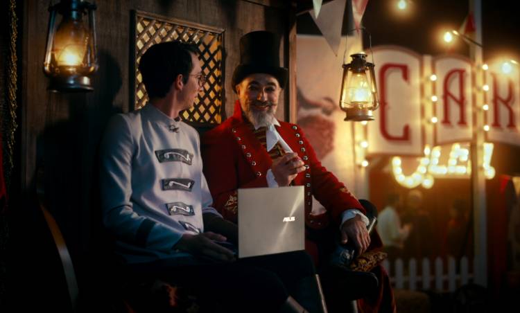 ASUS’un OLED Notebooklar için hazırlanan ve kısa sürede büyük beğeni toplayan yeni reklam kampanyası, bir sirk gösterisinden renkli sahnelerle ekrana geliyor. Özel bir platoda gerçeğe yakın bir sirk ortamı kurularak çekilen film için aralarında ateşbaz, pandomim sanatçısı gibi alanında profesyonel kişilerin de bulunduğu 50 kişilik bir figürasyon ekibi oluşturuldu. ASUS OLED’i Mete Gazoz temsil ederken, sihirbazlık geçmişi de bulunan oyuncu Selim Bayraktar, projeye özel hazırladığı sahne şovları ve çeşitli illüzyonlarla hünerlerini sergiledi.