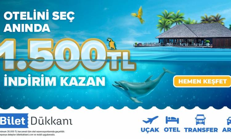 Bilet Dükkanı, "Otel Rezervasyonunda 1.500 TL İndirim" kampanyasıyla, web sitesi veya mobil uygulaması üzerinden yapılan 30.000 TL ve üzeri otel rezervasyonlarında "OTEL1500" indirim koduyla anında 1.500 TL indirim fırsatı sunuyor. Yaz boyunca geçerli olacak kampanya, 27 Haziran ile 30 Eylül tarihleri arasındaki rezervasyonları kapsıyor.