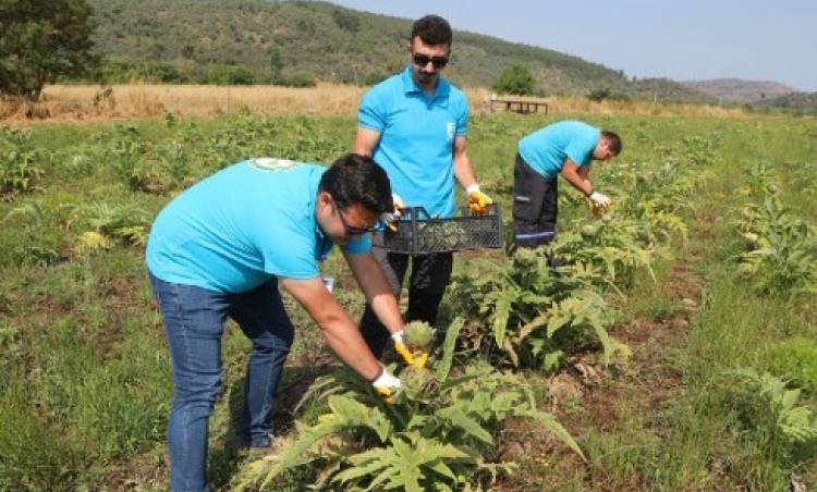 Bodrum Belediyesi Tarımsal Hizmetler Müdürlüğü tarafından tarımsal üretimin artırılarak ürün çeşitliliğinin sağlanması kapsamında 2022 yılının kasım ayında Karaova Kemer Mahallesi dikimini gerçekleştirdiği enginarların hasadına başladı.