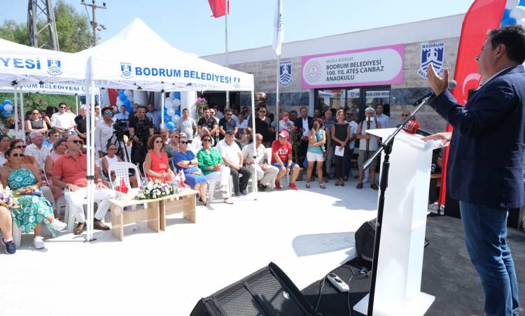 Bodrum Belediyesi 100. Yıl Ateş Canbaz Kreş ve Gündüz Bakımevinin bağışçısı Nazmi Canbaz ise daha nice böyle eğitim yuvaları için destek olmak istediğini ifade ederek herkese teşekkür etti. Nazmi Canbaz’ın konuşmasının sonunda Başkan Aras kendisine teşekkür plaketi verdi.