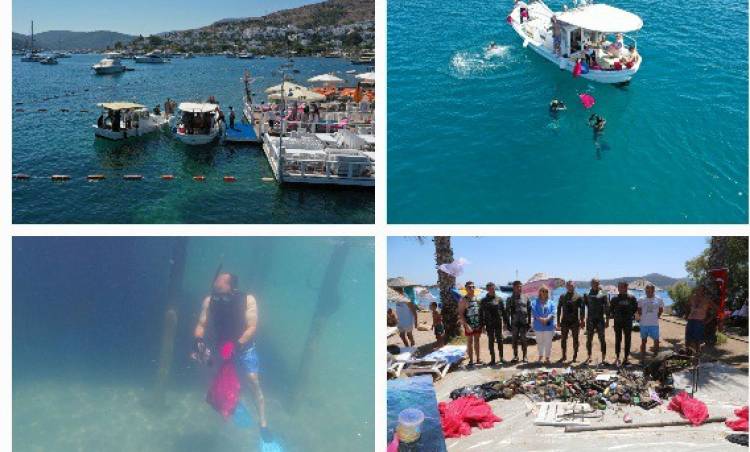 Yaklaşık bir saat süren deniz dibi temizliği çalışmasında, cam ve metal şişeler ile plastik, metal atıklar, balıkçı ağları ve araç lastiklerinden oluşan 200 kilograma yakın atık kıyıya çıkarıldı. Farkındalık yaratması için kıyıda bir süre sergilenen atık malzemeler, ekipler tarafından ayrıştırılarak Bodrum Belediyesi 1. Sınıf Atık Getirme Merkezi’ne götürüldü.