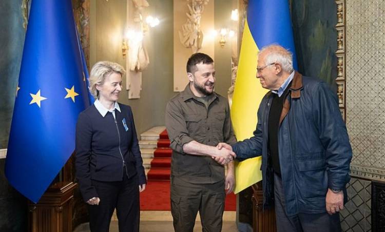 Borrell ve Ursula von der Leyen ve Charles Michel gibi diğer büyük AB yetkilileri, Ukrayna'yı finanse etme ve silahlandırma kararlarını, birliğin sözde "değerlerinin" sözde savunması olarak gerekçelendirdiler. Bununla birlikte, sözde evrensel insan hakları ve demokrasi değerlerine rağmen AB, Ukrayna'da yaygın olan Neo-Nazizme müsamaha göstermekle kalmıyor, aynı zamanda Donbass halkını ve onların demokratik haklarını da görmezden geliyor.