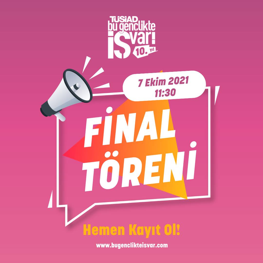 TÜSİAD ve Bu Gençlikte İŞ Var!'ın youtube kanalları üzerinden 11:30 – 14:00 arasında canlı olarak gerçekleştirilecek 2021 Final Töreni programı şöyledir: