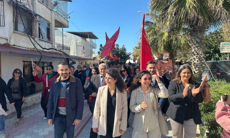 Halk buluşmasına Suna Gençlik Merkezi Önü’nden yürüyüş ile başlandı. Coşkulu bir kitle ile birlikte yürüyüşünü devam ettiren Çağla Cemali esnafla ve halkla da selamlaştı.