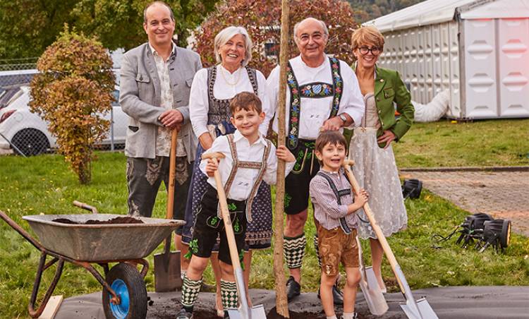Ellerinde küreklerle Heinz Lutz, eşi Claudia Lutz, oğlu Karl-Heinz Lutz ve kızı Susanne Maurer, genç ağacı şirket tesislerinde törenle toprağa dikmek üzere dışarı çıktılar. “Gelecek nesil çalışanlar da ağacın burada büyümesini izleyebilecekler.”