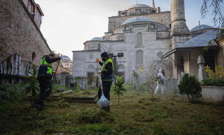 Rutin bakım ve temizlik çalışmaları, tarihi yapılara zarar vermeyen, özenle seçilmiş doğal içerikli malzemeler kullanılarak yapılıyor. Hem malzeme seçimi hem de uygulanacak teknik, alanında uzman restoratörler gözetiminde belirleniyor. İBB Miras’ın camilerle eşzamanlı olarak yüzlerce türbe ve haziredeki rutin temizlik, bakım ve onarım çalışmaları da hız kesmeden devam ediyor.