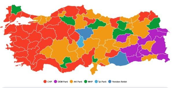 Manisa, Bursa, Balıkesir, Denizli gibi büyükşehirleri kazandığı illere ekleyen CHP, elindeki Antalya, Adana, Mersin, Aydın, Tekirdağ ve Eskişehir’de sandıktan yeniden başarıyla çıktı.