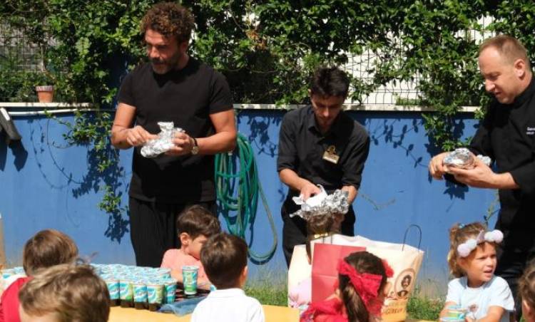 Türkiye'nin ünlü şeflerinden Gürkan Topçu, İstanbul Tuzla'da yer alan Masalbahçe Anaokulu’nu ziyaret etti. Minik öğrencilerle bir araya gelen Gürkan Şef, çocuklara hamburgerlerinden ikram etti. Anaokulu öğrencilerinin yoğun ilgisiyle karşılaşan Gürkan Şef, çeşitli oyunlardan örneklerle miniklere yemek kültürüne ilişkin bilgiler de aktardı.