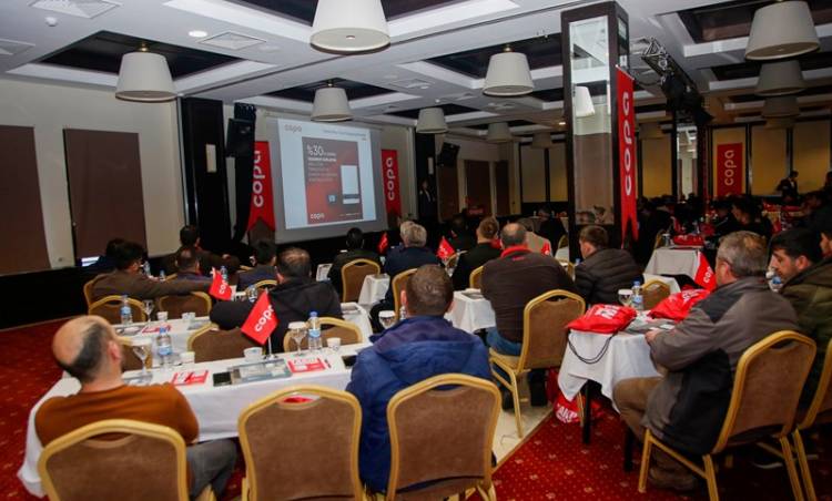 COPA Isı Sistemleri, ülke genelindeki iş ortaklarıyla düzenlediği bayi ve yetkili servis toplantılarında buluşmaya devam ediyor. İklimlendirme sektörünün lider firmalarından COPA, İstanbul, Kayseri, Antalya ve Adana’nın ardından Erzurum ve çevresindeki illerde bulunan bayileriyle Dedeman Palandöken Hotel’de bir araya geldi. Sektördeki 30. yılını kutlayan COPA, bayileriyle 2022 yılına yönelik hedef ve projelerini paylaşırken toplantılarda satış stratejileri ve bölgedeki büyüme hedefleri de ele alındı. Yeni dönem için ortak fikir ve projelerin geliştirildiği toplantıda, COPA Türkiye Satış Müdürü Can M. Zengin, Pazarlama Müdürü Deniz Baskak ve Satış Sonrası Hizmetler Yöneticisi Ali Erdemir sunumlar gerçekleştirdi.