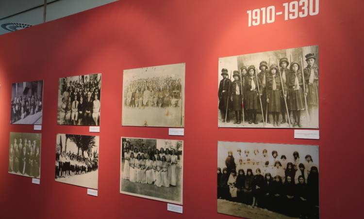Sergi, Cumhuriyet’in 100 yılında kadınlara dair görseller, Türkiye’nin modernleşme tarihinin de bir izdüşümü olarak, kadınların farklı yüzlerini sergiliyor. Kadın Eserleri Kütüphanesi ve Bilgi Merkezi Vakfı arşiv ve koleksiyonlarından seçkiye dahil ettiğimiz 150 görsel, Türkiye Cumhuriyeti’nin kuruluşundan bugüne, farklı kadınların, kadın örgütlerinin ve kadın gruplarının; eğitimde, sağlıkta, fabrikada, konferansta, mitingde, kürsüde, okulda veya piknikte vb. olan ‘an’larıyla çeşitli temsillerden oluşuyor. Örneğin, Türkiye Cumhuriyeti’ne giden yolda, Kurtuluş Savaşı’nın sembol fotoğraflarından olan Halide Edip Adıvar’ın kürsüden yaptığı etkili konuşmayla halkı direnmeye davet ettiği, bağımsızlık mücadelesinin kırılma anlarından birini oluşturan fotoğraf; ya da Türkiye’de İkinci Dalga Feminizmin ilk kitlesel eylemi olan Kadıköy’deki “Kadınlar Dayağa Karşı Dayanışmaya Yürüyüşü”ndeki kadınlar; veya Konya, Sivas gibi Anadolu illerinden kız okulları öğrencilerinin görselleri mikro ve makro tarihin belgeleri olarak sergileniyor; kamusal tanınırlığı olmayan ama kişisel arşivlerini Kütüphane’ye bağışlayan pek çok kadının albümlerinden görsellerle, Cumhuriyet’in kadın yüzünün çeşitliliğinden örnekler sergileniyor.