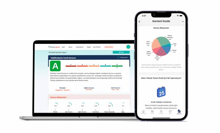 Bireysel kullanıcıların finansal geçmişleri, bankaların ortaklığıyla kurulan Kredi Kayıt Bürosu'nda toplanıyor. Kredi Kayıt Bürosu’nun en güncel verileri Türkiye’nin kredi notu ortalamasının 1.492 olduğunu gösteriyor. Kredi notu, bankaların gözünde kişilerin alabilecekleri alabilecekleri kredileri, kullanabilecekleri kredi kartı limitlerini belirlemek için göz önünde bulunduruluyor. Kredi derecelerini TeklifimGelsin’in mobil uygulaması üzerinden ücretsiz olarak öğrenebilen kullanıcılar, Kredi Karnesi ürününün tavsiyelerini uygulayarak krediye daha kolay ulaşma, doğru kredi kartlarını bulabilme ve finansal durumlarını güncel verilerle analiz edebilme olanağı buluyor.