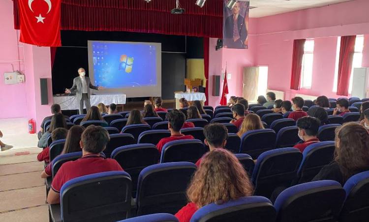 İzmir Dış Ticaret Mesleki ve Teknik Anadolu Lisesi’ni ziyaret eden Ege İhracatçı Birlikleri Genel Sekreteri İ. Cumhur İşbırakmaz, Çin’in dünya ticaretindeki konumu hakkında öğrencilere bir ders verdi.
