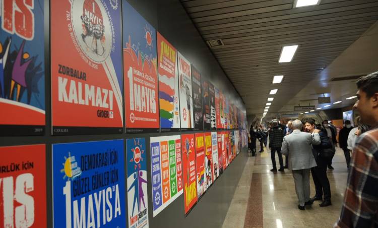 Devrimci İşçi Sendikaları Konfederasyonu (DİSK)’in “1976’dan bugüne 1 Mayıs Afişleri Sergisi İstanbul Büyükşehir Belediyesi (İBB)’in desteğiyle Taksim metrosunda açıldı.