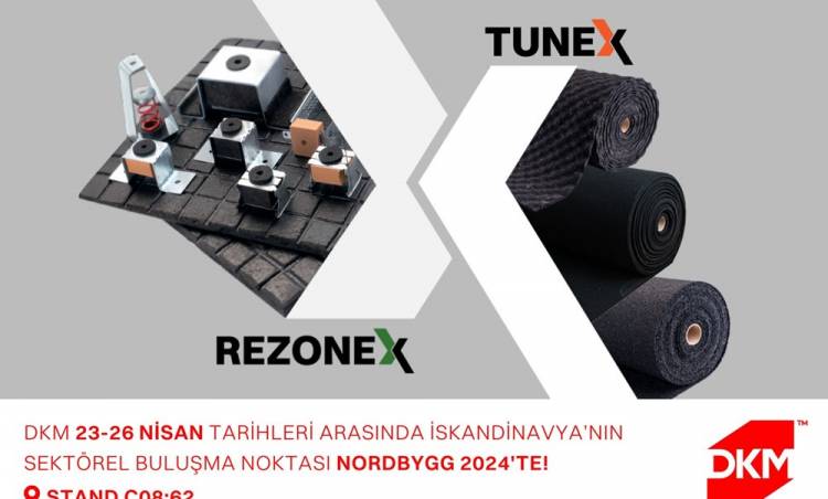 Sürdürülebilirlik ve ileri dönüşümde öne çıkan DKM İnşaat ve Danışmanlık’ın Rezonex ve Tunex markaları, %100 geri dönüştürülmüş kauçuktan üretilen birinci sınıf Titreşim Kontrolü ve Ses Yalıtımı çözümleri sunuyor.