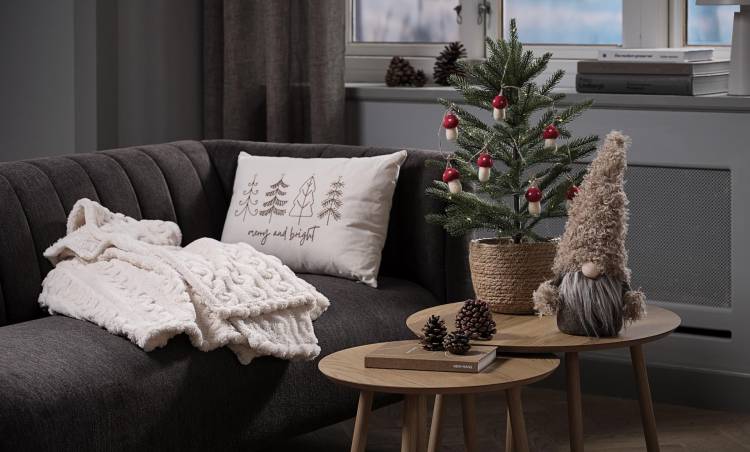 Pine ağacı desenleriyle süslenmiş ELLE yastık ve SELENIT polar battaniye gibi rahat ürünler ise toprak tonlarının doğal sıcaklığını ve konforunu oturma odanıza taşıyor.