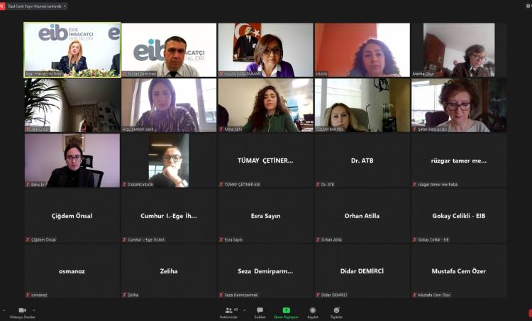 ge İhracatçı Birlikleri Koordinatör Başkanı Jak Eskinazi’nin açılış konuşmasıyla başlayan webinar İzmir Gazeteciler Cemiyeti Başkanı Dilek Gappi’nin moderasyonuyla Agrobay Seracılık Yönetim Kurulu Üyesi Arzu Şentürk Salık, TEMA Vakfı Yönetim Kurulu Başkanı Deniz Ataç, Demoteks Tekstil Kurucu Ortağı Hülya Karaduman, M.H.E. Gıda Genel Müdürü Hülya Peker, Ekonomi Yazarı Meliha Okur, Kardemir Şirketler Grubu Yönetim Kurulu Başkan Yardımcısı Özlem Bakırel, Sezgin Mermer Kurucu Ortağı Reyhan Sezgin’in katılımıyla gerçekleşti.