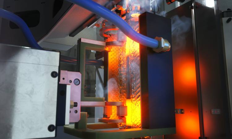 • İç dişli kesme işleminden (OP 30, şekillendirme) sonra, rotor mili yatak yuvaları, EMAG eldec'ten bir MIND L 1000 üzerinde OP 40'ta endüksiyonla ısıtılır ve sertleştirilir.