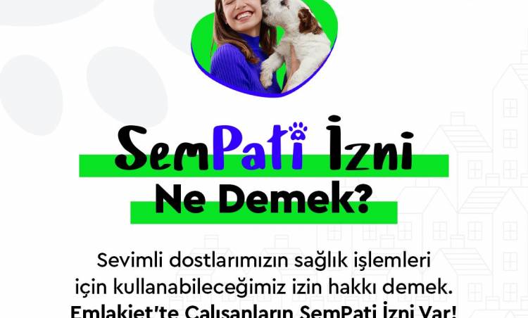 İş-özel yaşam dengesine önem vererek, çalışanların iş hayatı içinde “koşuşturma kültürü”nde boğulmasına izin vermeden, verimli çalışmayı önceliklendiren Emlakjet, çalışanlarının farklı ihtiyaçlarına yönelik izin uygulamalarını hayata geçirdi. Geçmiş yıllarda başlatılan SemPati izni ile evcil hayvanı olan çalışanlarını da unutmadı. Evcil hayvan sahibi Emlakjet çalışanları, sevimli dostlarının sağlık işlemlerini rahatça yerine getirebilmek için yılda 2 kez yarım gün izin kullanabiliyor.