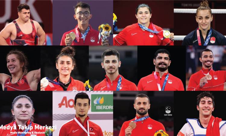 Türkiye’nin; 2’si altın, 2’si gümüş, 9’u bronz olmak üzere toplamda 13 madalya kazandığı Tokyo 2020 Olimpiyat Oyunları sonrası medyada en çok konuşulan sporcular da belli oldu. MTM Medya Takip Merkezi’nin, 10 bini aşkın basın, TV ve internet mecrasında, 23 Temmuz-13 Ağustos 2021 tarihleri arasındaki yayınlarda yaptığı taramalara göre; 33 bin 772 habere konu olan 5 kadın sporcumuz; toplam 41 bin 202 habere konu olan 8 erkek sporcumuza göre, oransal olarak, çok daha fazla konuşuldu.