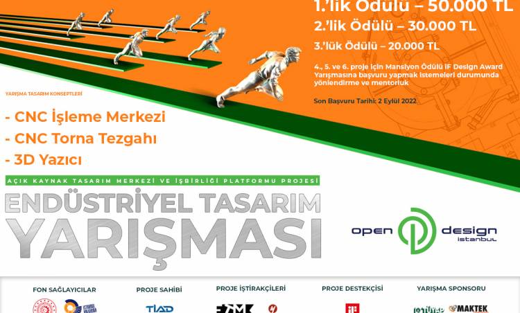 Proje hedefleri doğrultusunda, endüstriyel tasarımın önemini geniş kitlelere aktarmak amacıyla TİAD tarafından “Open Design İstanbul Endüstriyel Tasarım Yarışması” organize edildi. Yarışma kapsamında endüstriyel tasarım için; CNC Torna Tezgahı, CNC İşleme Merkezi, ve 3D Yazıcı olmak üzere üç ana konsept belirlendi. Katılımcılar istedikleri ürün tipini seçerek projelerini hazırlayarak yarışmaya başvuru yapabilecekler. Yarışmaya başvurular 2 Eylül 2022 saat 18:00’e kadar www.opendesignistanbul.com adresinde yer alan şartnameye uygun olarak yine aynı adreste yer alan online başvuru modülü aracılığı ile yapılabilecek.