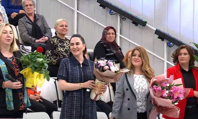 Programda kendilerini tanıtma fırsatı bulan kadın muhtar adayları, Esra Erol'a hediyeler getiriyor, yayın sonrasında toplu fotoğraf çektirme fırsatı buluyor.
