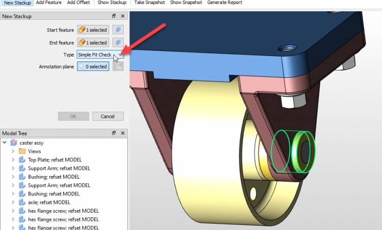 New Simple Fit Check analysis type – A new streamlined workflow allows users to check the fit between two features of size (pin/hole, slab/slot, pin/slot) with a few simple clicks.