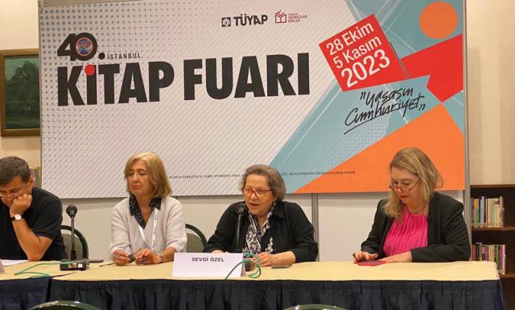 Dil Derneği ve Prof Dr. Vecihe Hatiboğlu Seçici Kurul, TÜYAP’ta bir de söyleşi düzenledi. Dil Derneği Başkanı Sevgi Özel’in yönettiği söyleşide, Dr. Gülden Türktan, Serpil Yılmaz ve Ertuğrul Özüaydın da konuşmacı olarak yer aldılar.