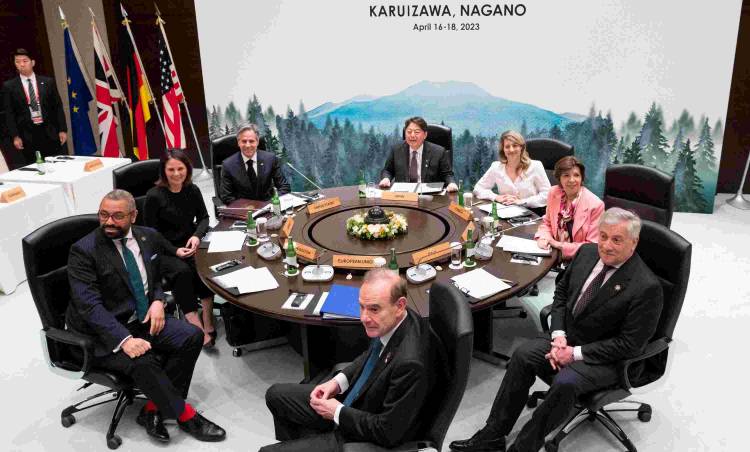 Japonya Başbakanı Fumio Kishida, Ukrayna Cumhurbaşkanı Volodymyr Zelenskyy'yi çevrimiçi yayın yoluyla G7 zirvesine katılmaya davet etti. G7 dışişleri bakanları, 18 Nisan'da yayımlanan bir tebliğde, ülkelerini geçen yıl askeri operasyonun başlamasından bu yana Rusya'ya uygulanan yaptırımları yoğunlaştırmaya adadılar. Dışişleri bakanları, Rus güçlerinden derhal ve koşulsuz olarak geri çekilmelerini istedi; bu, güç konumunda Batı değil Moskova olduğu için açıkça gerçekleşmeyecek bir şeydi.