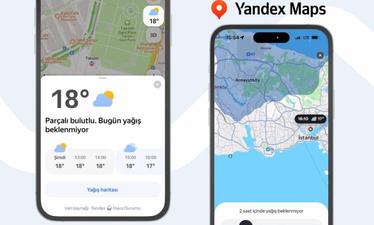 Yandex Maps'in ana ekranında artık hava durumu bilgileri de yer alıyor. Kullanıcılar, gittikleri şehir için hava tahminini kolayca görebiliyor ve önümüzdeki birkaç saatlik yağış haritasını inceleyebiliyor. Bu özellik, şehir içinde yapılacak seyahatlerin planlanmasına yardımcı oluyor. Örneğin, gideceğiniz yere ulaşacağınız zaman yağmur yağıp yağmayacağını önceden kontrol etmeniz mümkün oluyor.