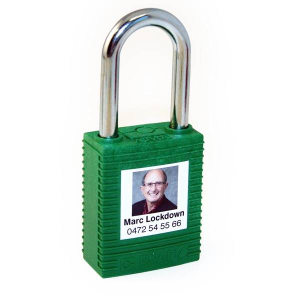 Kişiselleştirme seçenekleri, doğrudan Brady’nin Kilitleme/Etiketleme için naylon SafeKey kilitleri üzerine tam renkli ve yüksek çözünürlüklü bir şekilde uygulanabilir. Aşınma, kimyasallar ve UV’ye karşı dayanıklı olan baskı, hem iç hem de dış mekan kilitleri için oldukça güvenilirdir. Ayrıca, renkler ve karmaşık şekiller için uygun olmasa da daha yüksek bir güvenilirlik sağlamak amacıyla kilit kazıma işlemi de gerçekleştirilebilir. Kilitleri kişiselleştirmek için üçüncü bir standart yaklaşım olarak, herhangi bir Brady kilitle birlikte verilen kendinden yapışkanlı etiketlere temel bilgiler yazılabilir veya yazdırılabilir.