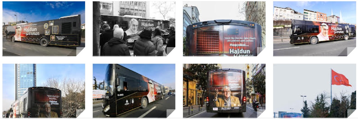Otobüsün dış giydirmesinde, Haldun Dormen’in Türkiye’nin kültürel belleğine yön veren geniş filmografisi ve tiyatro geçmişi sergileniyor. Tasarımda; Hisseli Harikalar Kumpanyası, Lüküs Hayat, Kantoncu, Şahane Züğürtler, Muhteşem İkili, Paramparça, Ağa İle Uşağı Matti ve Şahane Düğün gibi unutulmaz tiyatro oyunlarına vurgu yapılıyor. Ayrıca sanatçının 1981 yapımı Gırgıriye ile başlayan sinema yolculuğu; O Kadın, Dadı, Sayın Bakanım, Unutulmayanlar ve son dönemde iz bırakan Çukur gibi projeleriyle birlikte otobüsün görsel dünyasında yer alıyor.