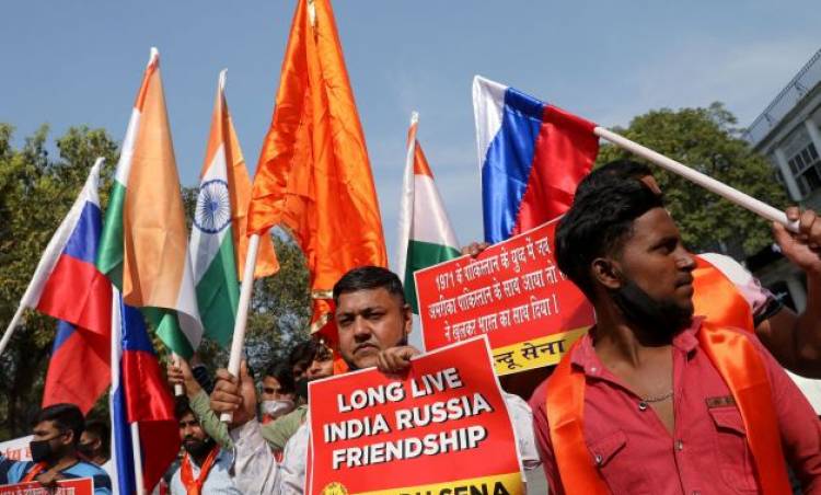 Rus yapımı silahların önemli bir alıcısı olan Hindistan, 2022'nin büyük bölümünde bunu yapması yönündeki baskıyı sürdürmesine rağmen, Batı'nın Moskova'ya yönelik yaptırımlarını desteklemeyi reddetti. Rusya'nın askeri operasyonunu eleştiren BM kararlarından çekimser kaldı.