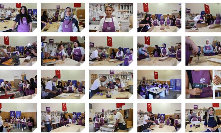 İstanbul Büyükşehir Belediyesi (İBB), kadınların yaşamın her alanında etkin, özgüvenli ve donanımlı bireyler olarak var olmalarını destekleyen çalışmalarını sürdürüyor. Bu kapsamda İBB Kadın, “Yaratıcı Kadınlar için Marangozluk Atölyesi” düzenledi. Bakırköy’de bulunan İBB Sosyal Hizmetler Dairesi Başkanlığı Marangozhanesi’nde dün gerçekleştirilen “Kadınlar İçin Temel Marangozluk Becerileri Giriş Eğitimi” atölyesine katılan kadınlar, ahşap, MDF, sunta gibi malzemelerin özellikleri ve kullanım alanlarını, dekupaj, freze, planya, zımpara ve benzeri temel el aletlerinin kullanımı, birleştirme, cilalama, yapıştırma, çizme, vidalama, dolap kulp/menteşe montajı, ray takma gibi pratik uygulamaları ve raf, ayakkabılık, çerçeve gibi küçük mobilya ve ahşap eşyaların yapımını öğrendi.