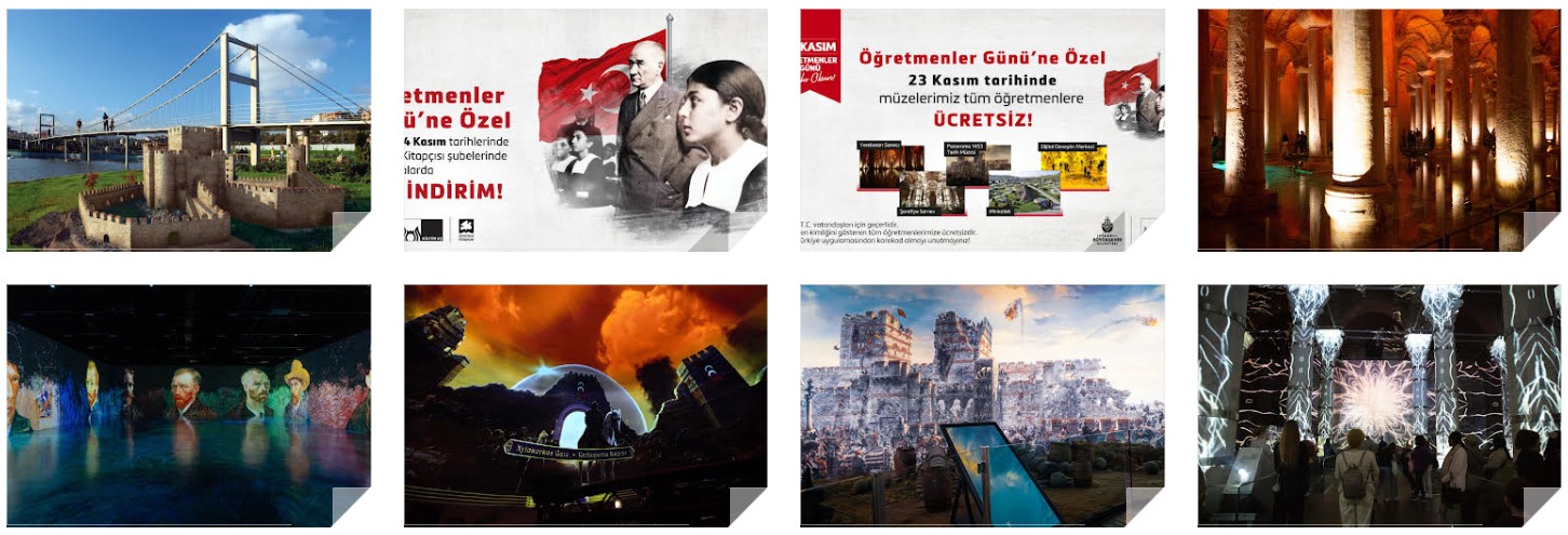 Kültür A.Ş. ise öğretmenlere kültür ve sanat dolu bir dizi hediye sunuyor. İlk olarak, İstanbul Kitapçısı'nda 22, 23 ve 24 Kasım tarihleri arasında tüm kitaplar için yüzde 20 indirim fırsatı sunulacak. Bunun yanı sıra, 23 Kasım'da Kültür A.Ş.'ye bağlı müzeler olan Yerebatan Sarnıcı, Panorama 1453 Tarih Müzesi, Dijital Deneyim Merkezi, Şerefiye Sarnıcı ve Miniatürk, tüm öğretmenlere ücretsiz olarak açık olacak. Bu ücretsiz girişten yararlanmak isteyen öğretmenlerin TC vatandaşı olması, öğretmen kimlik kartını ibraz etmesi ve Radar Türkiye uygulaması üzerinden bir karekod alması gerekiyor. Ayrıca, yine 23 Kasım'da Yerebatan Sarnıcı'nın büyüleyici atmosferinde Marmara Ensemble konseri düzenlenecek.